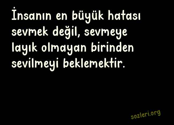 İnsanın en büyük hatası sevmek değil, sevmeye layık olmayan birinden sevilmeyi beklemektir. ( Efsane Sözler )