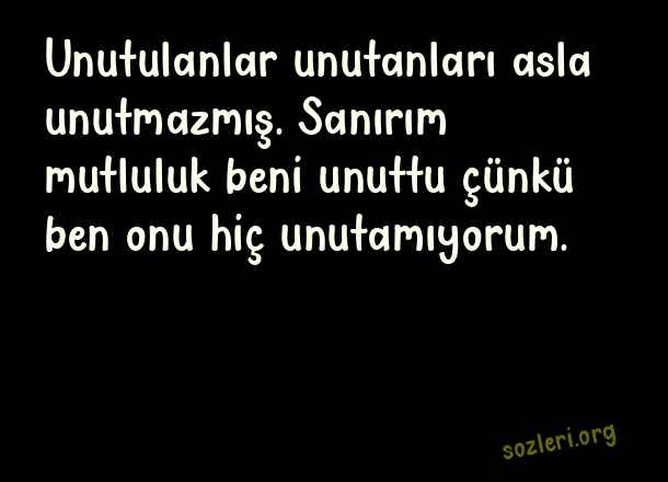 Unutulanlar unutanları asla unutmazmış. Sanırım mutluluk beni unuttu çünkü ben onu hiç unutamıyorum. ( Efsane Sözler )