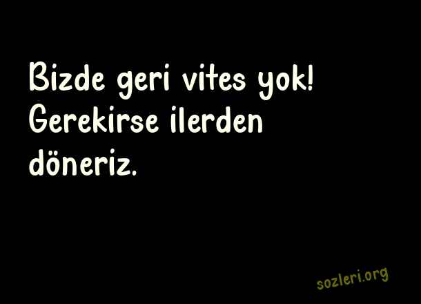 Bizde geri vites yok! Gerekirse ilerden döneriz. ( Egolu Sözler )