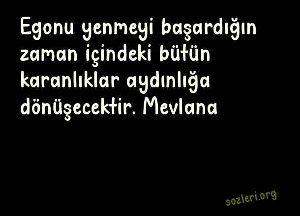 Egonu yenmeyi başardığın zaman içindeki bütün karanlıklar aydınlığa dönüşecektir. Mevlana ( Egolu Sözler )