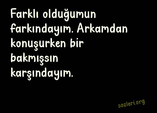 Farklı olduğumun farkındayım. Arkamdan konuşurken bir bakmışsın karşındayım. ( Egolu Sözler )