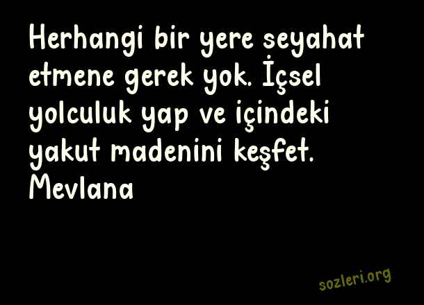 Herhangi bir yere seyahat etmene gerek yok. İçsel yolculuk yap ve içindeki yakut madenini keşfet. Mevlana ( Egolu Sözler )