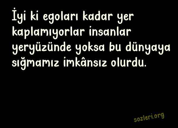 İyi ki egoları kadar yer kaplamıyorlar insanlar yeryüzünde yoksa bu dünyaya sığmamız imkânsız olurdu. ( Egolu Sözler )