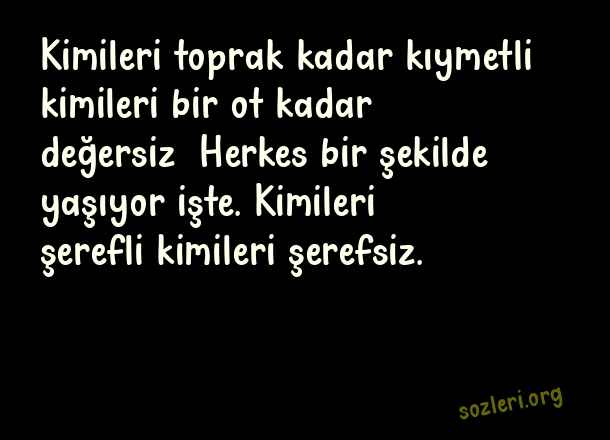 Kimileri toprak kadar kıymetli kimileri bir ot kadar değersiz… Herkes bir şekilde yaşıyor işte. Kimileri şerefli kimileri şerefsiz. ( Egolu Sözler )