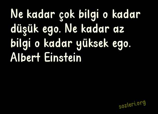 Ne kadar çok bilgi o kadar düşük ego. Ne kadar az bilgi o kadar yüksek ego. Albert Einstein ( Egolu Sözler )
