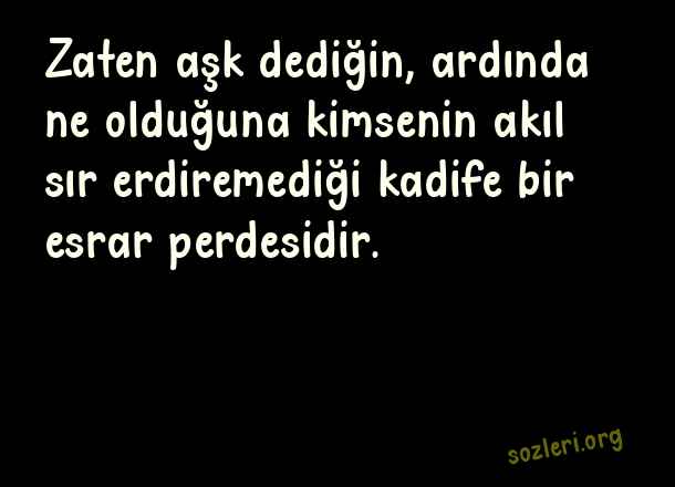 Zaten aşk dediğin, ardında ne olduğuna kimsenin akıl sır erdiremediği kadife bir esrar perdesidir. ( Elif Şafak Aşk )