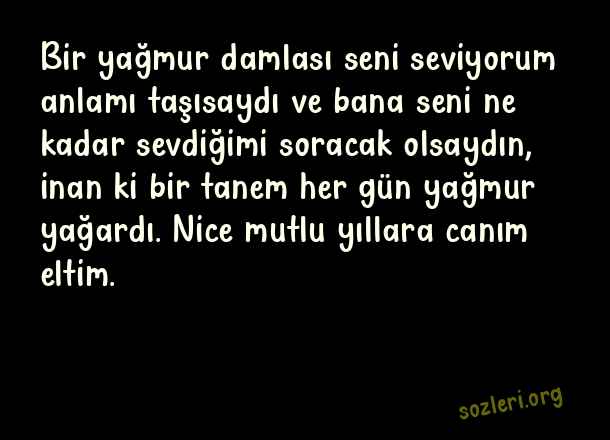 Bir yağmur damlası seni seviyorum anlamı taşısaydı ve bana seni ne kadar sevdiğimi soracak olsaydın, inan ki bir tanem her gün yağmur yağardı. Nice mutlu yıllara canım eltim. ( Eltiye Doğum Günü )