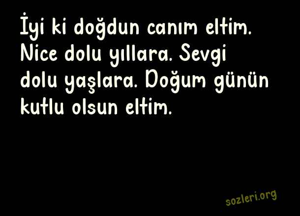 İyi ki doğdun canım eltim. Nice dolu yıllara. Sevgi dolu yaşlara. Doğum günün kutlu olsun eltim. ( Eltiye Doğum Günü )