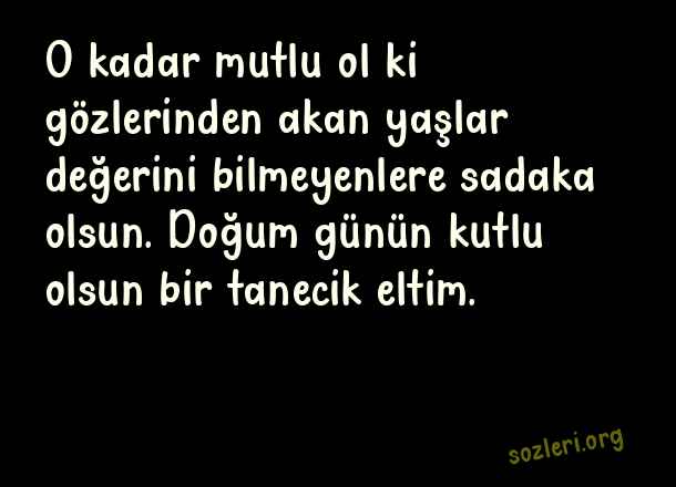 O kadar mutlu ol ki gözlerinden akan yaşlar değerini bilmeyenlere sadaka olsun. Doğum günün kutlu olsun bir tanecik eltim. ( Eltiye Doğum Günü )