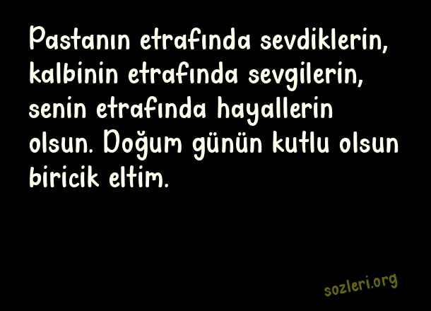 Pastanın etrafında sevdiklerin, kalbinin etrafında sevgilerin, senin etrafında hayallerin olsun. Doğum günün kutlu olsun biricik eltim. ( Eltiye Doğum Günü )