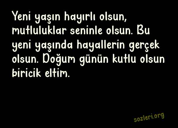 Yeni yaşın hayırlı olsun, mutluluklar seninle olsun. Bu yeni yaşında hayallerin gerçek olsun. Doğum günün kutlu olsun biricik eltim. ( Eltiye Doğum Günü )