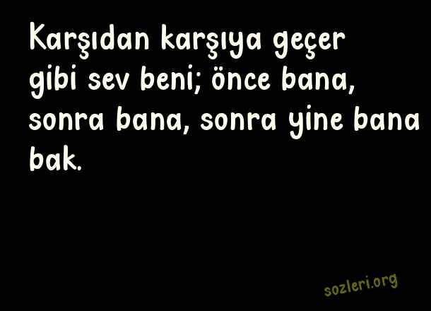Karşıdan karşıya geçer gibi sev beni; önce bana, sonra bana, sonra yine bana bak. ( En Çok Beğenilen Aşk )