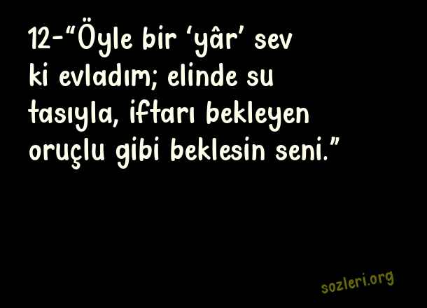 12-“Öyle bir ‘yâr’ sev ki evladım; elinde su tasıyla, iftarı bekleyen oruçlu gibi beklesin seni.” ( En Güzel 20 Aşk Sözü )