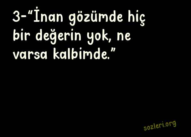 3-“İnan gözümde hiç bir değerin yok, ne varsa kalbimde.” ( En Güzel 20 Aşk Sözü )