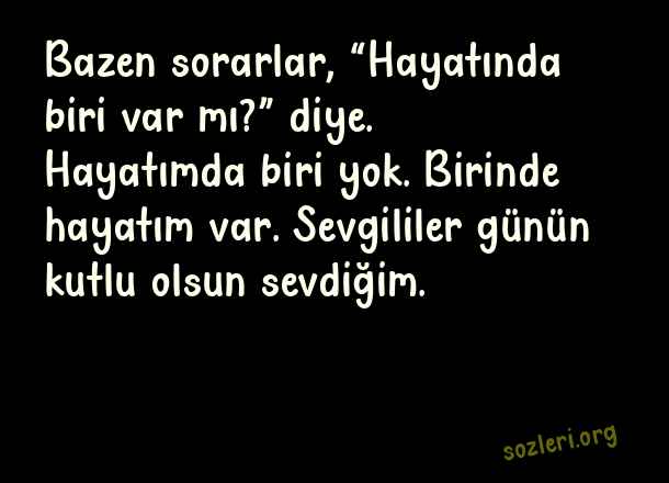 Bazen sorarlar, “Hayatında biri var mı?” diye. Hayatımda biri yok. Birinde hayatım var. Sevgililer günün kutlu olsun sevdiğim. ( En Güzel Sevgililer Günü )