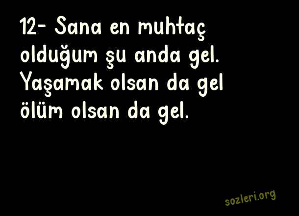 12- Sana en muhtaç olduğum şu anda gel. Yaşamak olsan da gel ölüm olsan da gel. ( En İyi 20 Aşk Sözü )