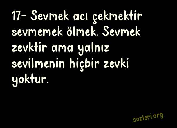 17- Sevmek acı çekmektir sevmemek ölmek. Sevmek zevktir ama yalnız sevilmenin hiçbir zevki yoktur. ( En İyi 20 Aşk Sözü )