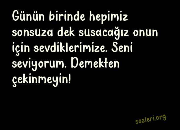 Günün birinde hepimiz sonsuza dek susacağız onun için sevdiklerimize. Seni seviyorum. Demekten çekinmeyin! ( En İyi 50 Aşk Sözü )