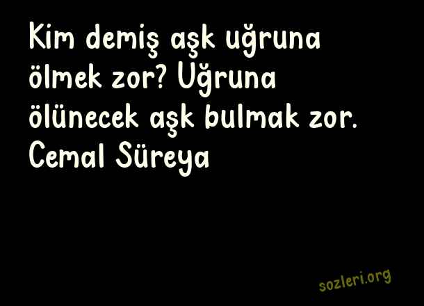 Kim demiş aşk - En İyi Aşk Sözleri .. Kim demiş aşk uğruna ölmek zor? Uğruna ölünecek aşk bulmak zor. Cemal Süreya ( En İyi Aşk )