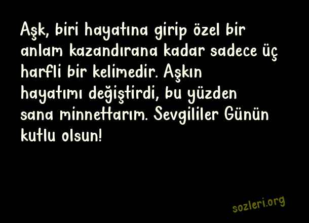 Aşk, biri hayatına girip özel bir anlam kazandırana kadar sadece üç harfli bir kelimedir. Aşkın hayatımı değiştirdi, bu yüzden sana minnettarım. Sevgililer Günün kutlu olsun! ( Erkeğe Sevgililer Günü )