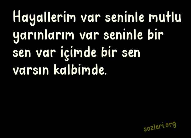 Hayallerim var seninle mutlu yarınlarım var seninle bir sen var içimde bir sen varsın kalbimde. ( Erkek Sevgiliye Aşk )