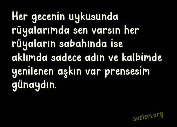 Her gecenin uykusunda rüyalarımda sen varsın her rüyaların sabahında ise aklımda sadece adın ve kalbimde yenilenen aşkın var prensesim günaydın. ( Erkek Sevgiliye Günaydın )
