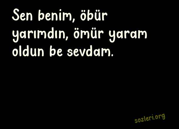 Sen benim, öbür - Erkek Sevgiliye Güzel Sözler .. Sen benim, öbür yarımdın, ömür yaram oldun be sevdam. ( Erkek Sevgiliye Güzel Sözler )