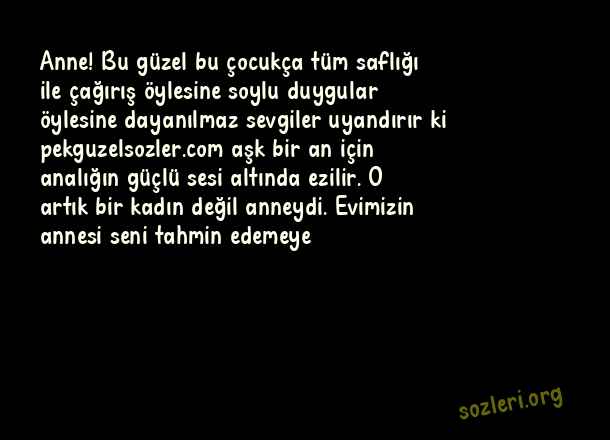 Anne! Bu güzel bu çocukça tüm saflığı ile çağırış öylesine soylu duygular öylesine dayanılmaz sevgiler uyandırır ki aşk bir an için analığın güçlü sesi altında ezilir. O artık bir kadın değil anneydi. Evimizin annesi seni tahmin edemeye ( Eşe Anneler Günü )