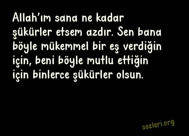 Allah’ım sana ne kadar şükürler etsem azdır. Sen bana böyle mükemmel bir eş verdiğin için, beni böyle mutlu ettiğin için binlerce şükürler olsun. ( Eşe Aşk )