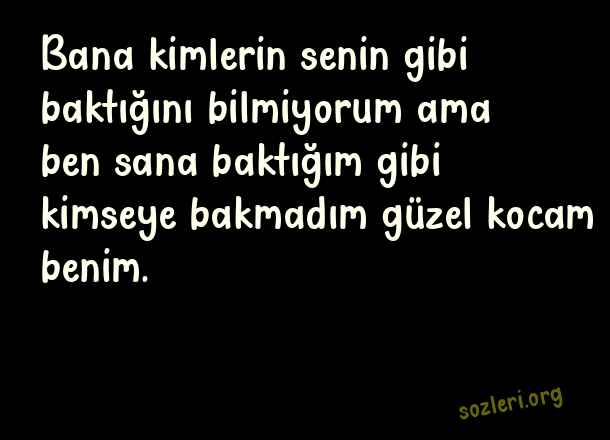 Bana kimlerin senin gibi baktığını bilmiyorum ama ben sana baktığım gibi kimseye bakmadım güzel kocam benim. ( Eşe Aşk )