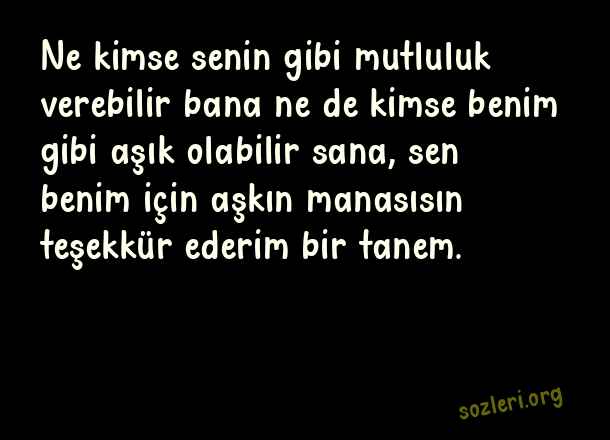 Ne kimse senin gibi mutluluk verebilir bana ne de kimse benim gibi aşık olabilir sana, sen benim için aşkın manasısın teşekkür ederim bir tanem. ( Teşekkür )
