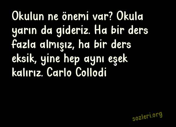 Okulun ne önemi var? Okula yarın da gideriz. Ha bir ders fazla almışız, ha bir ders eksik, yine hep aynı eşek kalırız. Carlo Collodi ( Eşek )