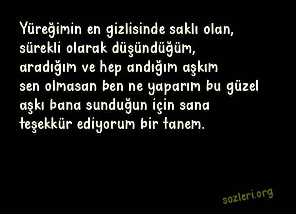 Yüreğimin en gizlisinde saklı olan, sürekli olarak düşündüğüm, aradığım ve hep andığım aşkım sen olmasan ben ne yaparım bu güzel aşkı bana sunduğun için sana teşekkür ediyorum bir tanem. ( Teşekkür )