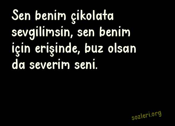Sen benim çikolata sevgilimsin, sen benim için erişinde, buz olsan da severim seni. ( Esmerlere Sözler )