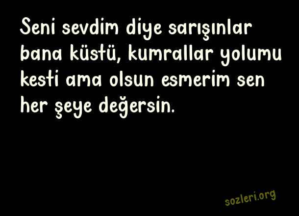 Seni sevdim diye sarışınlar bana küstü, kumrallar yolumu kesti ama olsun esmerim sen her şeye değersin. ( Esmerlere Sözler )