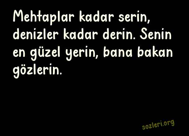 Mehtaplar kadar serin, denizler kadar derin. Senin en güzel yerin, bana bakan gözlerin. ( Kısa Etkileyici Aşk )