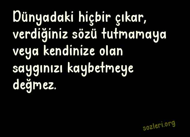 Dünyadaki hiçbir çıkar, verdiğiniz sözü tutmamaya veya kendinize olan saygınızı kaybetmeye değmez. ( Etkileyici Yazılar )