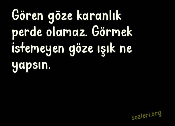 Gören göze karanlık perde olamaz. Görmek istemeyen göze ışık ne yapsın. ( Etkileyici Yazılar )