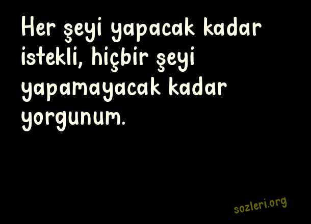 Her şeyi yapacak - Etkileyici Yazılar .. Her şeyi yapacak kadar istekli, hiçbir şeyi yapamayacak kadar yorgunum. ( Etkileyici Yazılar )
