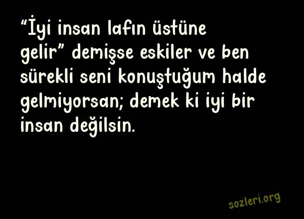 “İyi insan lafın üstüne gelir” demişse eskiler ve ben sürekli seni konuştuğum halde gelmiyorsan; demek ki iyi bir insan değilsin. ( Etkileyici Yazılar )