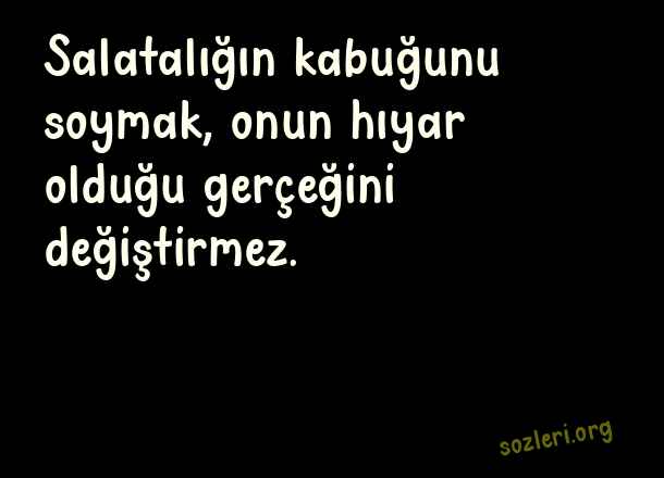 Salatalığın kabuğunu soymak, - Etkileyici Yazılar .. Salatalığın kabuğunu soymak, onun hıyar olduğu gerçeğini değiştirmez. ( Etkileyici Yazılar )
