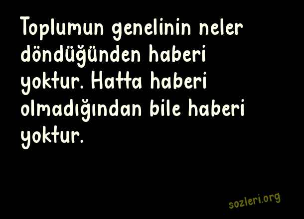 Toplumun genelinin neler döndüğünden haberi yoktur. Hatta haberi olmadığından bile haberi yoktur. ( Etkileyici Yazılar )