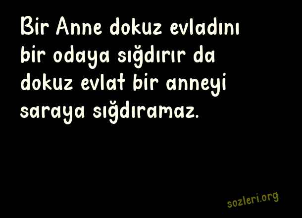 Bir Anne dokuz evladını bir odaya sığdırır da dokuz evlat bir anneyi saraya sığdıramaz. ( Evlat İle İlgili Güzel Sözler )