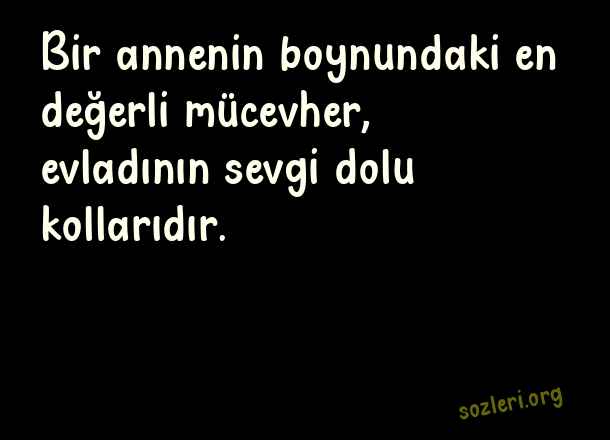 Bir annenin boynundaki en değerli mücevher, evladının sevgi dolu kollarıdır. ( Evlat İle İlgili Güzel Sözler )