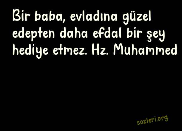 Bir baba, evladına güzel edepten daha efdal bir şey hediye etmez. Hz. Muhammed ( Evlat İle İlgili Güzel Sözler )