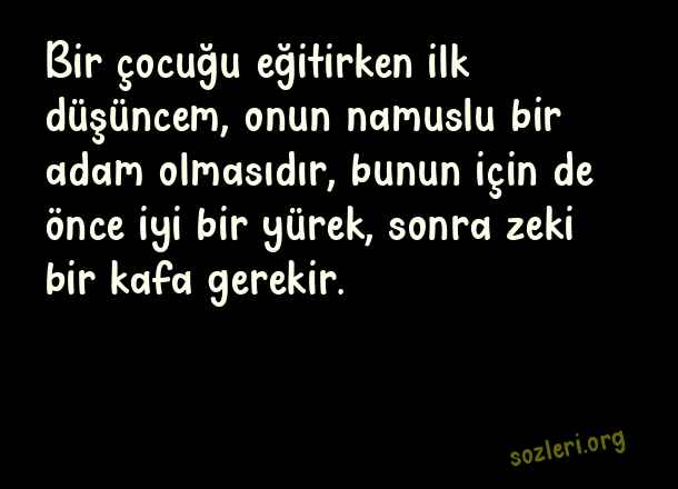 Bir çocuğu eğitirken ilk düşüncem, onun namuslu bir adam olmasıdır, bunun için de önce iyi bir yürek, sonra zeki bir kafa gerekir. ( Evlat İle İlgili Güzel Sözler )