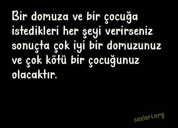 Bir domuza ve bir çocuğa istedikleri her şeyi verirseniz sonuçta çok iyi bir domuzunuz ve çok kötü bir çocuğunuz olacaktır. ( Evlat İle İlgili Güzel Sözler )