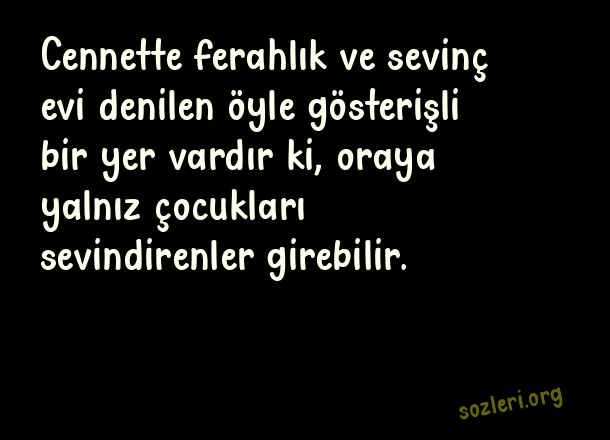 Cennette ferahlık ve sevinç evi denilen öyle gösterişli bir yer vardır ki, oraya yalnız çocukları sevindirenler girebilir. ( Evlat İle İlgili Güzel Sözler )