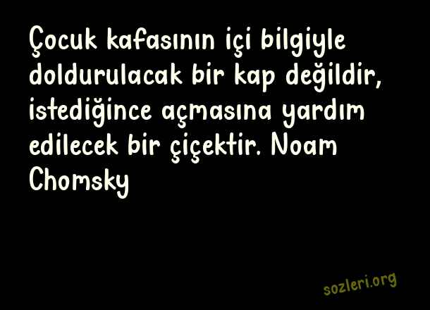 Çocuk kafasının içi bilgiyle doldurulacak bir kap değildir, istediğince açmasına yardım edilecek bir çiçektir. Noam Chomsky ( Evlat İle İlgili Güzel Sözler )