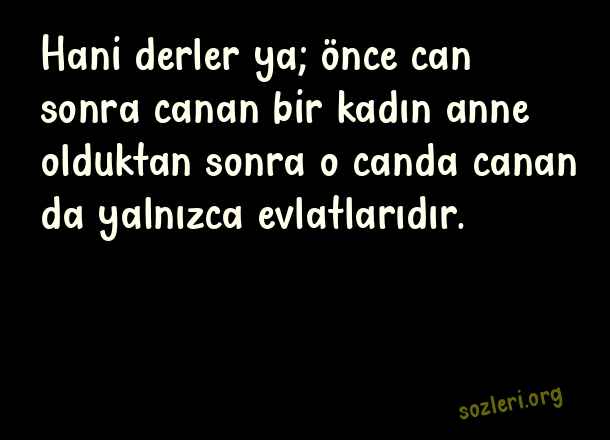 Hani derler ya; önce can sonra canan bir kadın anne olduktan sonra o canda canan da yalnızca evlatlarıdır. ( Evlat İle İlgili Güzel Sözler )